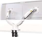 Features counterbalanced gas spring arms for easy adjustments, allowing for smooth positioning of both monitors.