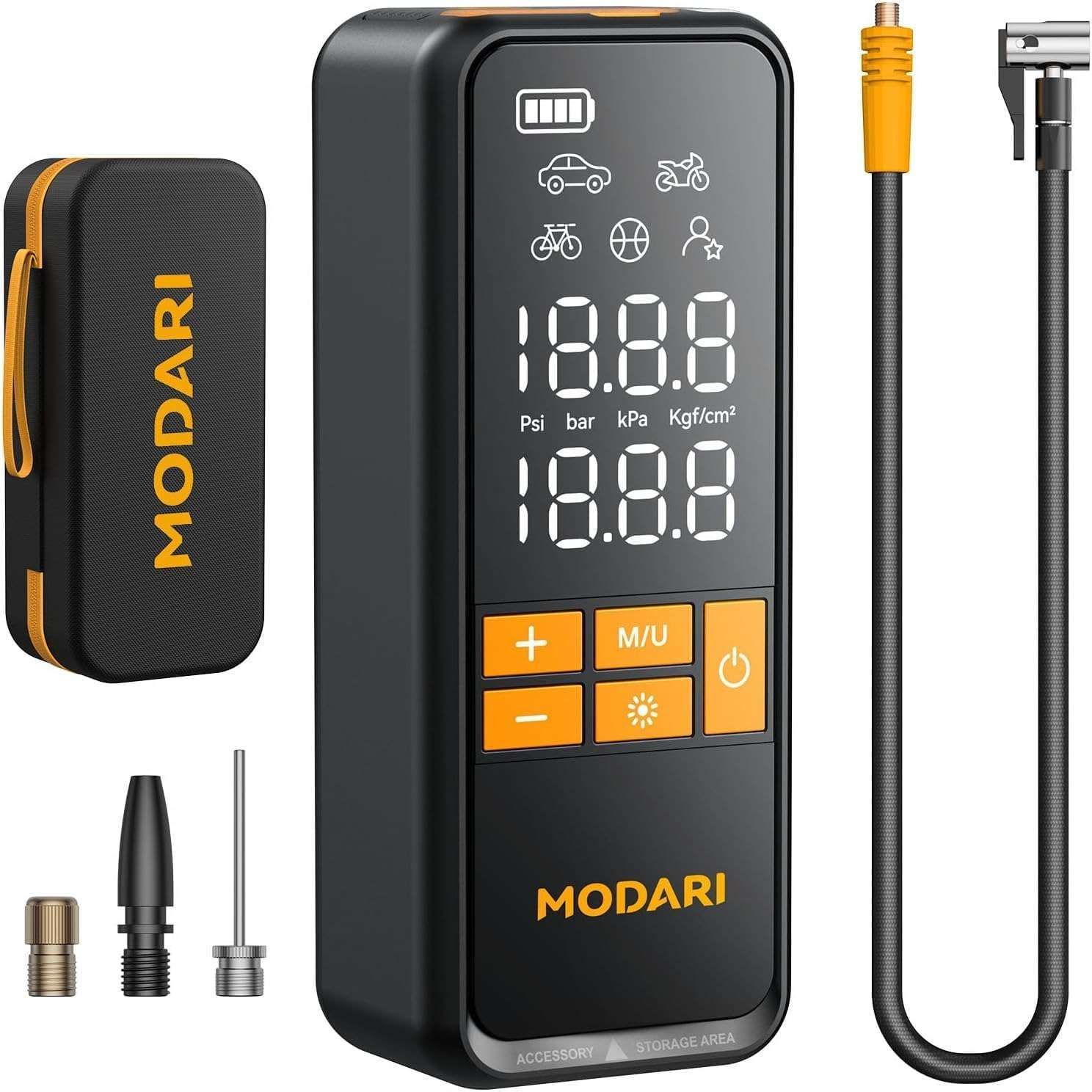 Fast inflation with up to 5X speed for quick top-ups.160 PSI max pressure handles car, SUV, and bike tires.